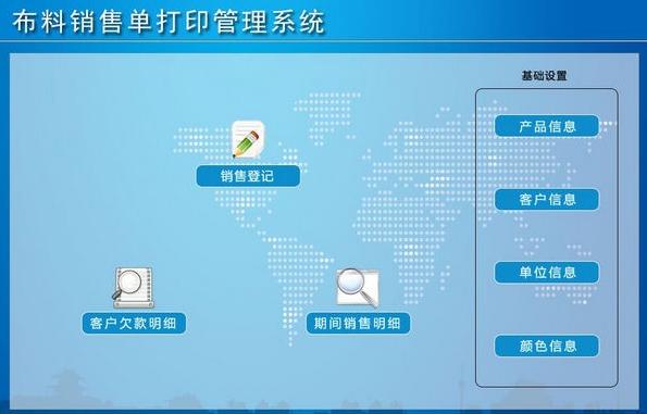 “布匹印花管理系统”是一款适用于服装行业的软件。其功能包括基本设置:产品、客户、单位、颜色;管理:登记,客户欠款明细和期间明细。软件提供打印单据、自动统计单据的布数据、统计客户的付款情况等功能。数据可以导出到Excel文件;分为单机版和网络版;在网络上运行会更好的体现其强大的功能和高效率。