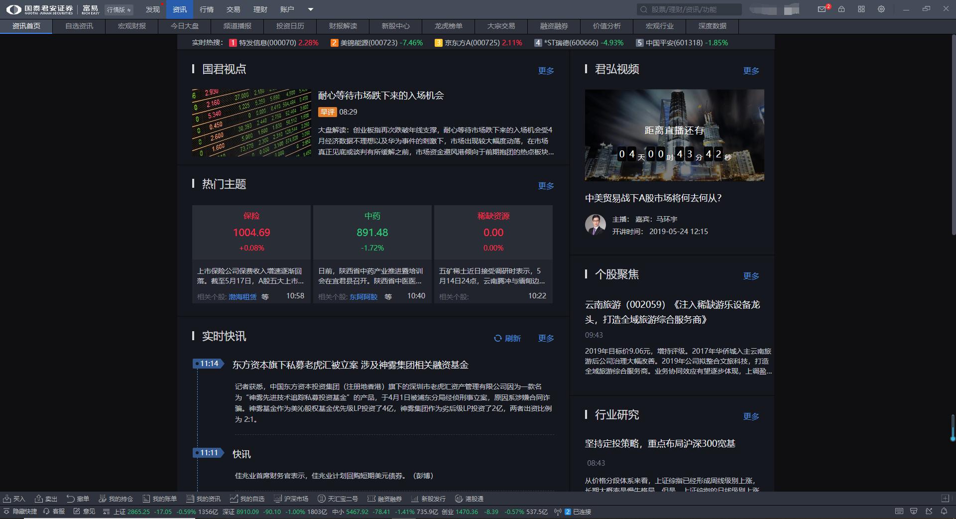 国泰君安富易交易系统用户界面