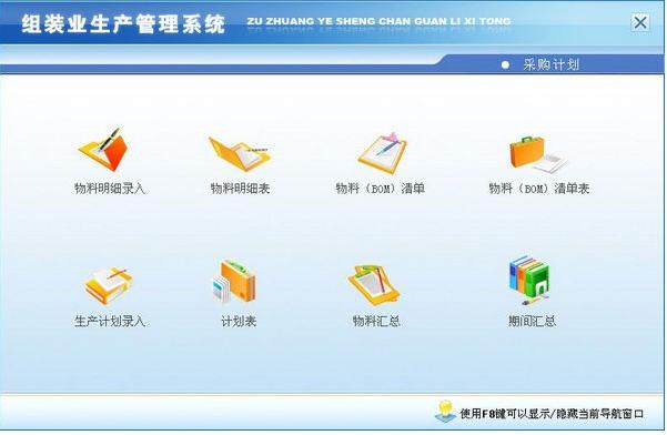 组装业生产管理系统最新版本是一款非常全面的生产管理软件。组装业生产管理系统版本具有物料明细、物料清单、物料汇总、期间汇总、采购计划、采购清单等功能。组装业生产管理系统适用于众多厂商,用户可以自行开发设计新的生产管理方案。