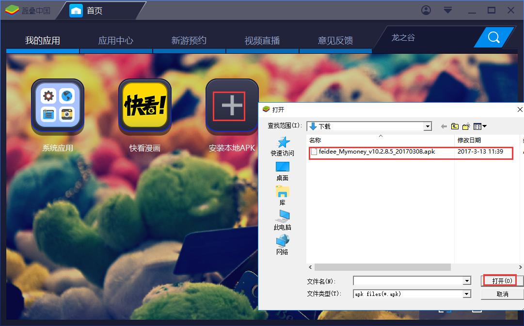 2.单击安装本地apk选择合适的安装包。