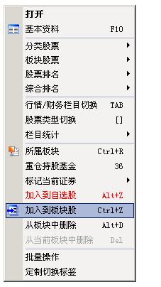 按照上述方法找到需要的股票后,点击鼠标右键,在弹出菜单中选择添加到股票选择或添加到盘中,或按Ctrl+Z,点击ALT+D删除自选股。