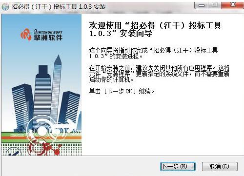 1.在本网站下载招必得江干投标工具软件安装包,双击打开下载的。exe文件进入软件安装界面。