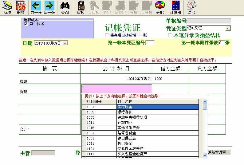 36.可以通过树形目录直接选择账户;也可以通过账户代码快速录入;