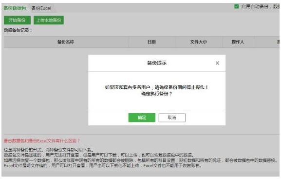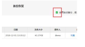 6.也可以勾选右上角的【自动备份】,设置每月自动备份周期和备份转发邮箱。输入激活码后,系统会在设定的备份周期内每月24: 00前自动完成备份,并将备份数据发送到备份转发邮箱。