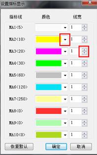 帮助用户快速修改指标显示中实线的颜色和线宽。颜色包括常用配色,也支持定制。线宽范围是
