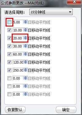 2.点击上方的“5”、“15”、“30”等循环按钮,切换到k线;