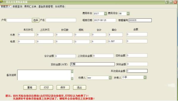 亿达水电缴费回单打印是一款专门针对电费、水费的票据打印工具。在软件中设置账号以及上月的阅读度和单价,软件会自动计算水电用量,更加方便简洁。