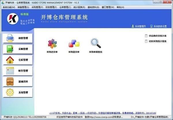 4.办公电脑可以运行,开博仓库管理系统版本支持WinXP以上的Windows 32位和基于位的系统。无其他库支持,绿色版本,重装系统不会影响软件的运行,无需重装软件;