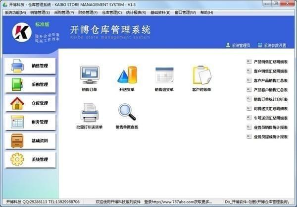 开博仓库管理系统是一个优秀的仓库货物管理系统。开博仓库管理系统版设置了订单、送货单管理、退货、采购入库、采购退货、产品入库、产品出库、记账、财务管理等功能。,可以灵活应用于各种工作模式。