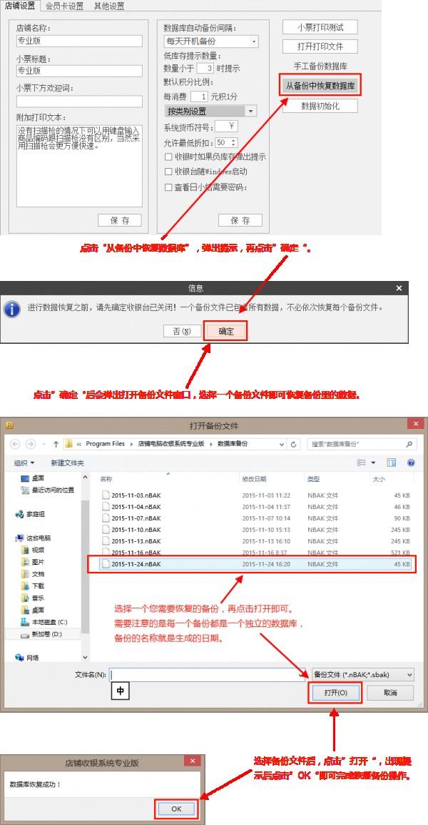 进入收银系统后台管理-系统设置界面,点击“从备份中恢复数据库”-选择要恢复的备份。