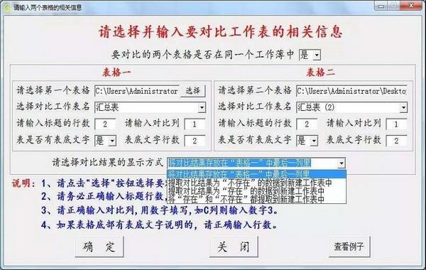 功能6:比较表格数据。当有两个表时,需要比较两个表中的数据进行包含,并将比较结果存储在最后一列或者提取到新的工作表中!