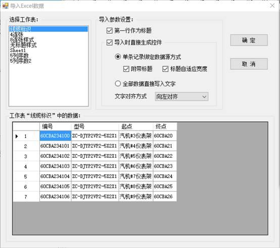 在菜单中选择“文件”->“导入Excel文件”菜单,进入打开Excel文件窗口,选择一个编辑好的Excel文件,点击“打开”按钮,进入Excel导入参数设置窗口。