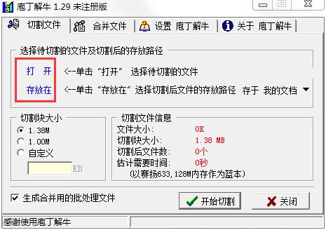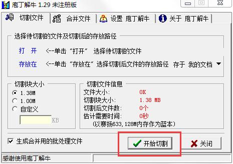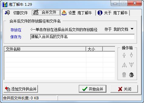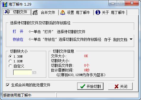 庖丁解牛版是一款简单方便的文件拆分和合并工具,而庖丁解牛电脑版拥有直观清晰的中文界面,允许用户根据自定义大小对指定文件进行裁剪,并将裁剪后的子文件合并还原为源文件。庖丁解牛这个软件可以满足用户对文件分割和合并的基本需求。