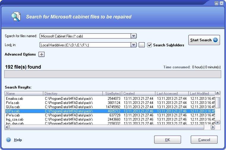 支持在客户端计算机上查找和选择要修复的CAB文件。