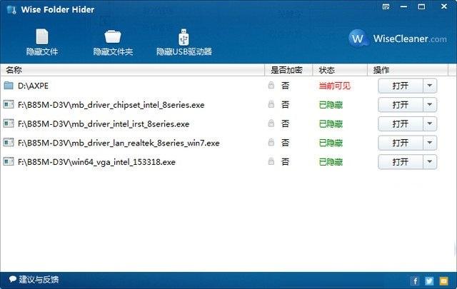 隐藏其他不同的文件夹。当它涉及到修改一个隐藏的文件或文件夹,用户不必取消隐藏,编辑和隐藏它了。只需点击“打开”按钮,隐藏的文件或文件夹将被打开,因此它变得可见。,你可以像它一样编辑或修改它,它没有被隐藏。当您完成编辑,关闭程序和文件或文件夹将再次自动隐藏,节省您额外的步骤。当你隐藏一些你经常使用或编辑的文件时,这个神奇的功能就派上用场了。
