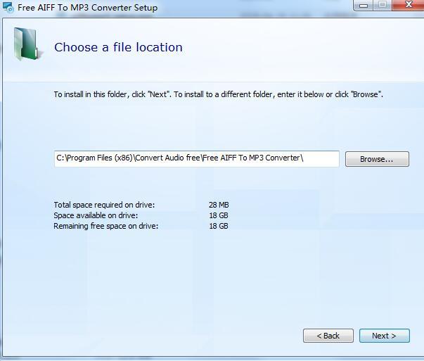 2.选择安装目的地。默认为C: PG RAM文件(x86) convert audio freeFree AIFF To MP3 Converter,可以通过点击bwse进行修改。