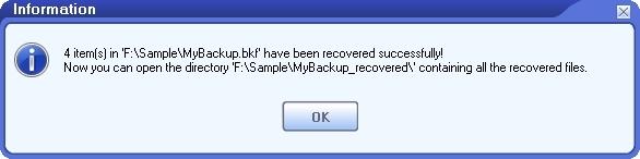 修复过程后,如果源BKF文件可以成功修复,您将看到以下消息框: