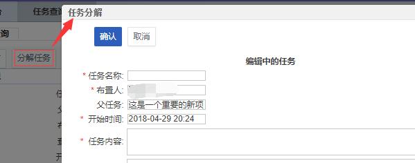 分解任务。只有当执行人是自己时,才能看到这个按钮。点击此按钮分解任务。