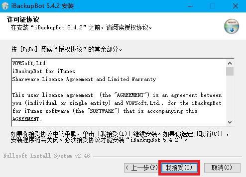 1.双击打开ibackupbot最新版本的安装程序,进入安装向导,点击下一步继续安装。