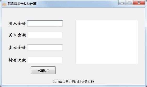 微金收益率计算是一个用易语言写的小计算工具。有了最新版微金收益率计算中的这个工具,你就可以根据买入价格、买入金额、卖出价格、持有天数轻松计算出黄金收益率,非常方便快捷。