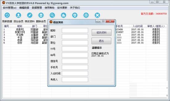 YY语音人事管理软件版是一款基于办公行业设计的企业公司考勤管理工具。YY语音人事管理软件版本功能齐全,基于ACCESS数据库开发,旨在方便YY用户管理其帮会YY人员信息。主要功能有:添加会员、修改资料、删除会员、查询会员。直观地管理公会中普通成员和管理层的信息。