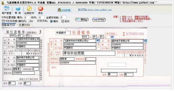 飞速进账单支票打印简介