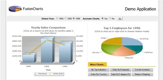 FusionCharts XT & # 8211它提供了所有常规图表,如柱形图、条形图、折线图、面积图、饼图、组合图和堆叠图,以及高级图表,如组合图、移动图、缩放线、XY图、Mamekko图和Pareto图。