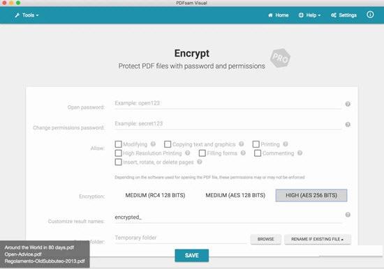用密码保护PDF文件并应用权限。该文件将使用RC4 128位、AES 128位或AES 256位加密。