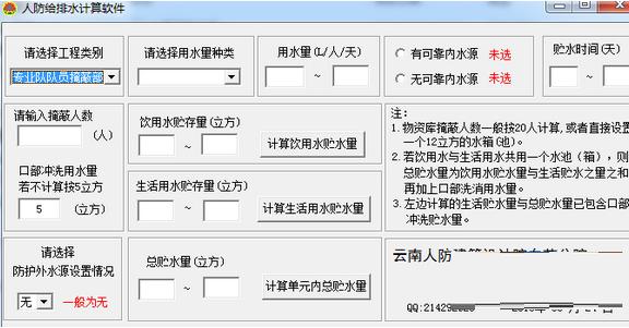 最新版人防给排水计算软件是一个非常有用的计算蓄水量的工具,最新版人防给排水计算软件是一个非常实用的辅助人防给排水设计的计算工具。人防给排水计算软件版本用于计算人防给排水设计中饮用水、生活用水的储水量及单元内总储水量,为人防给排水设计的相关设计工作提供帮助。