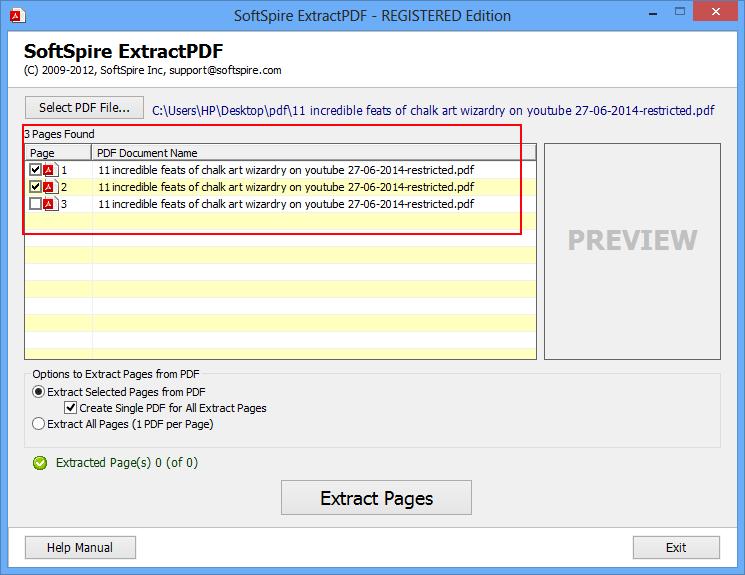 此工具的此功能允许您仅提取PDF文件的选定页面。例如,如果您只想提取4页,只选择这些页面,软件将从PDF文件中提取它们。