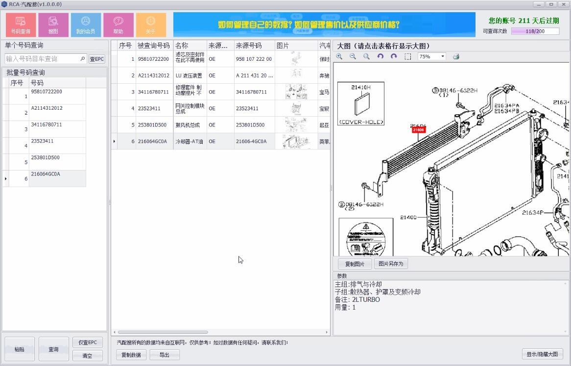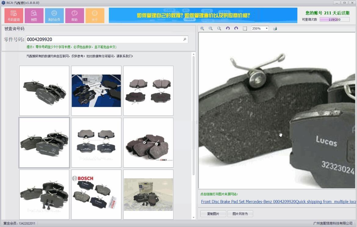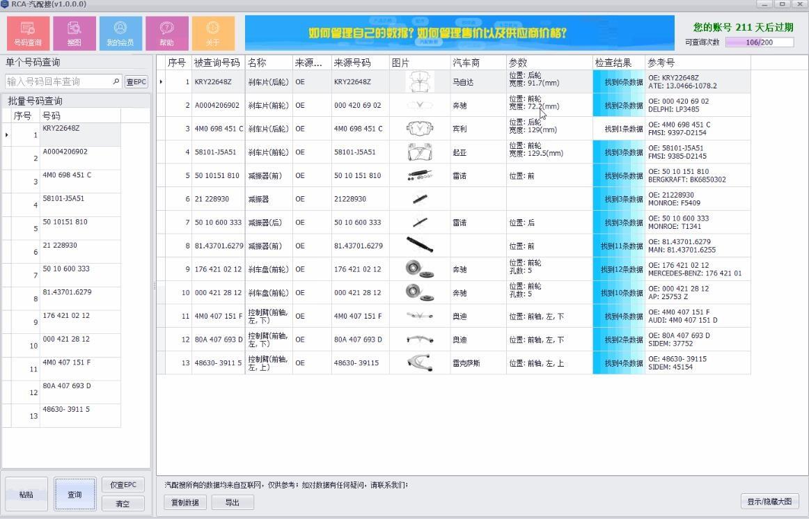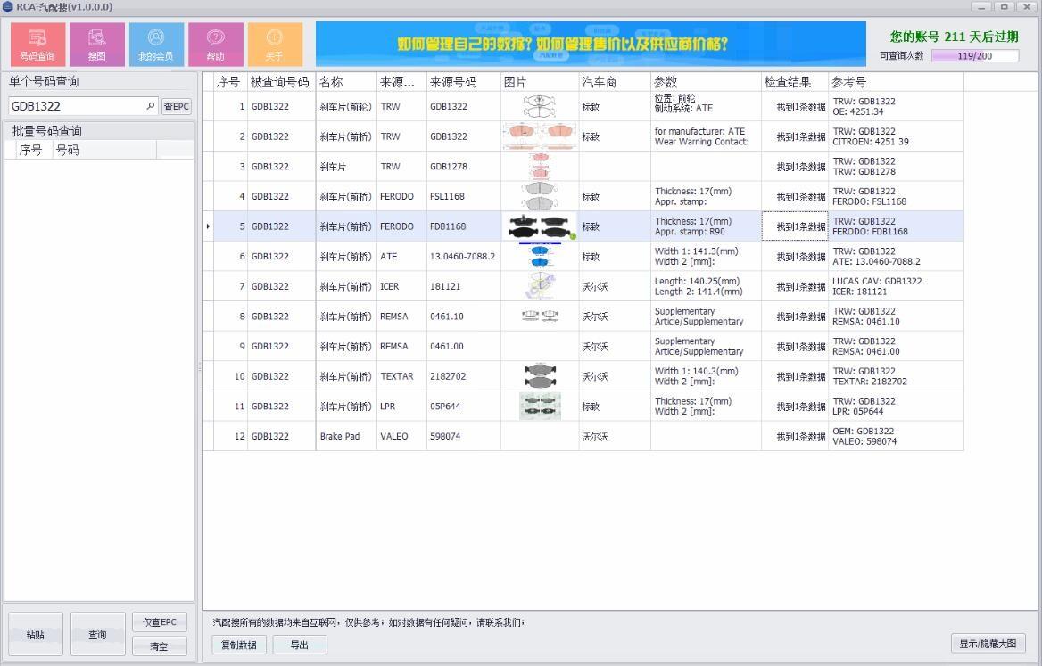 2.版本RCA-汽配搜支持批量查询所有对应号码的品牌数据和图片。