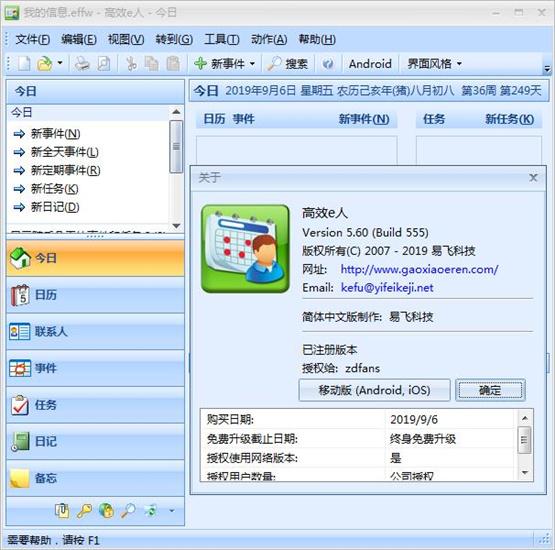 EfficientPIM P版是一款跨平台的个人管理器,功能全面,实用性超强。EfficientPIM P版具有通讯录、日程、任务计划、事务提醒、万年历、笔记本、备忘录、密码管理等功能。最新版本的EfficientPIM P支持30多种语言,用户遍布全球。