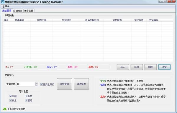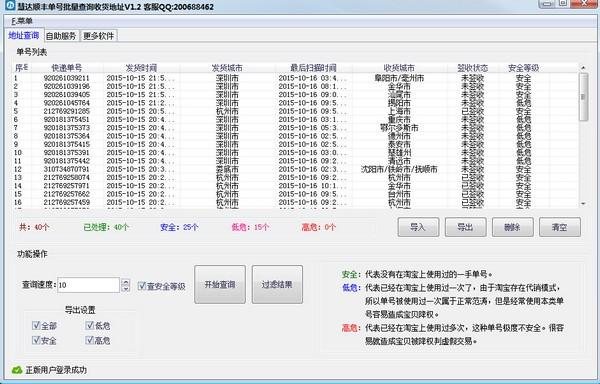 版本1。慧达顺丰单号批量查询收货地址支持安全级别查询。
