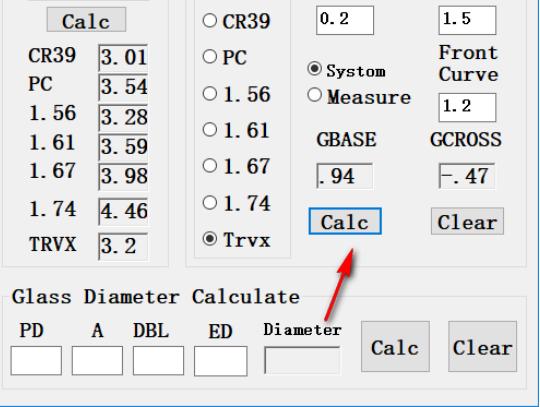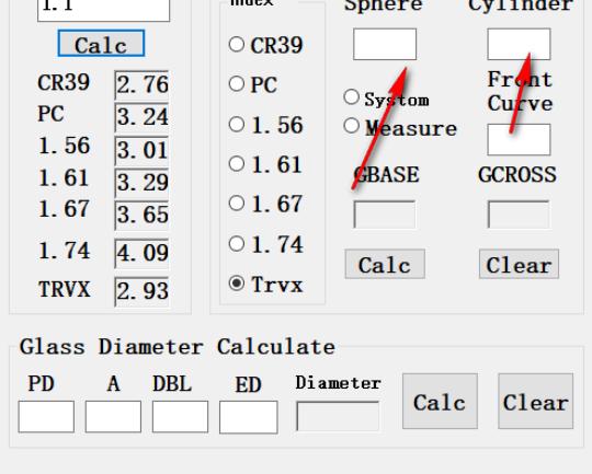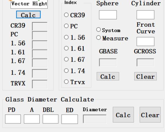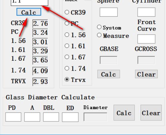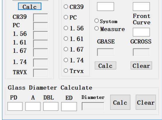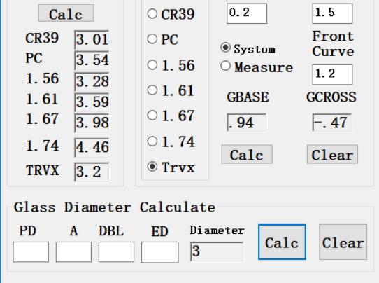 3.版本眼镜片光学计算器支持曲线计算,输入参数可自动显示CR39、PC等数值。