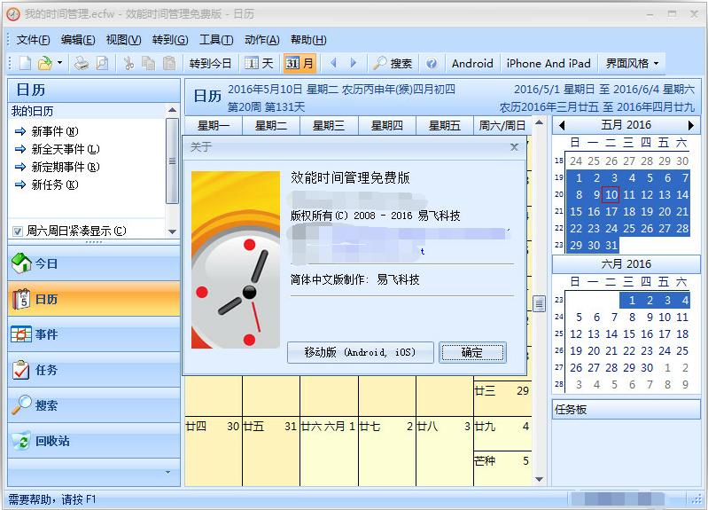 效能时间管理提供了多种日历视图,通过天、工作周、周、月或年的直观日历视图,可以一目了然地看到某一天会发生什么。