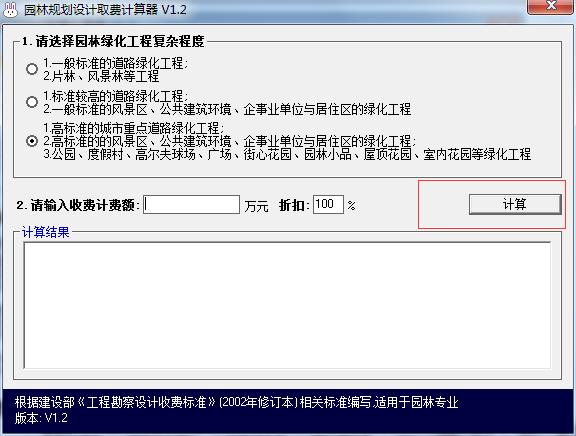 园林规划设计取费计算器使用方法