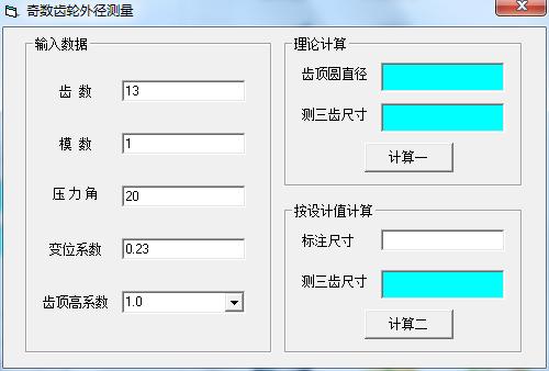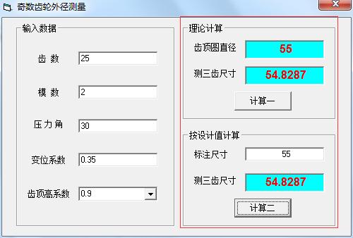 最新版的测量奇齿外径是一款页面简洁大方、应用范围广、功能丰富强大、逻辑简洁的专业计算工具。有了这个工具,用户可以立即计算出结果,从而节省了每个人的计算时间。你只需要打开最新版的测量奇齿外径,输入你的齿数、模数、压力角、位移系数等等就可以计算出结果。