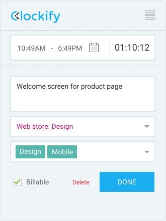 您可以输入您的工作内容,并添加项目、任务、标签和计费状态。