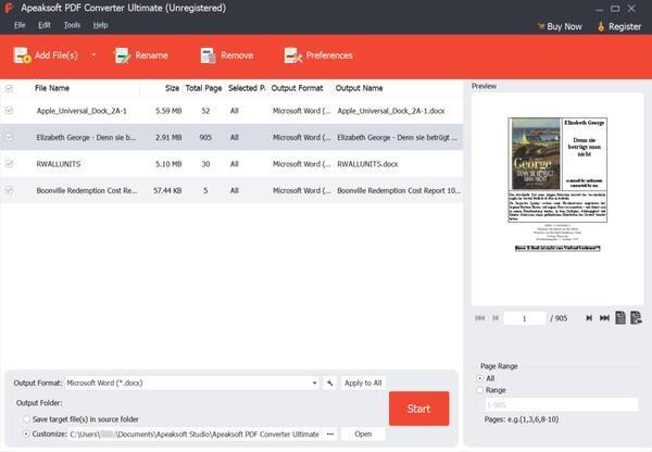 为了提高您的工作效率,PDF converter允许您导入多个PDF文件,并同时将所有PDF文件转换为不同的输出格式。或者,您甚至可以选择性地转换PDF文件的一部分。此外,预览功能使您能够在转换之前预览输出效果,以确定它是否符合您的需要。