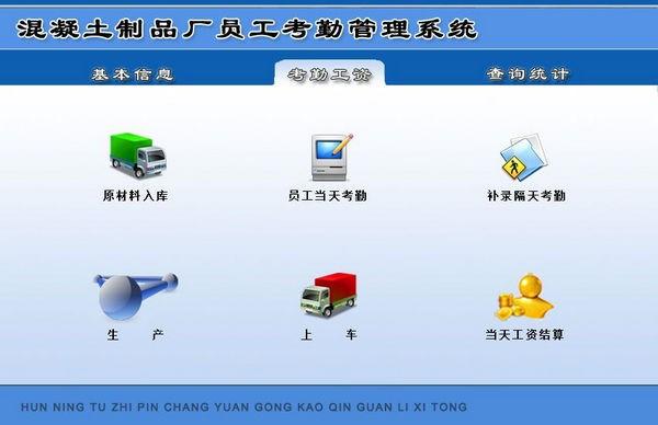 混凝土制品厂员工考勤管理系统是专门为混凝土制品厂开发的管理员工考勤的软件。该软件具有强大的查询功能,包括生产查询、登机查询、产品库存检查、员工考勤等。让你轻松,提高工作效率!