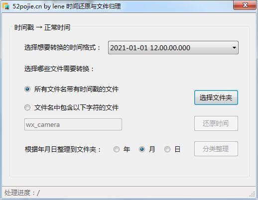 时间还原与文件归理是一款非常简单实用的文件排序软件。这个软件的主要功能是帮助用户快速整理文件。有时,我们从电脑上下载很多文件。如果我们不对这些文件进行分类,找到需要使用的文件可能会非常麻烦和费时。这时候我们可以用这个软件帮你整理文件,可以按年、月整理成文件夹,你可以根据实际需要指定一个。