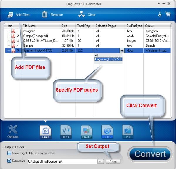 Part & # 8212选择要从PDF文件转换的任何页面。