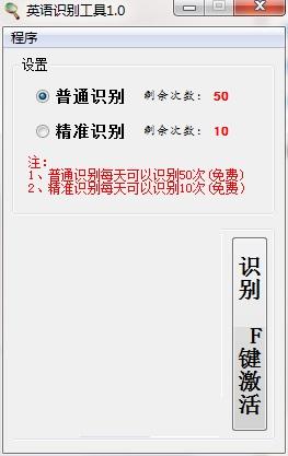 英语识别翻译是一款桌面快速翻译软件,可以翻译电脑屏幕上任何地方的英语。可以通过快捷键激活工具来使用。该软件是绿色的,免费安装。每天可免费使用50次,必要时可下载。