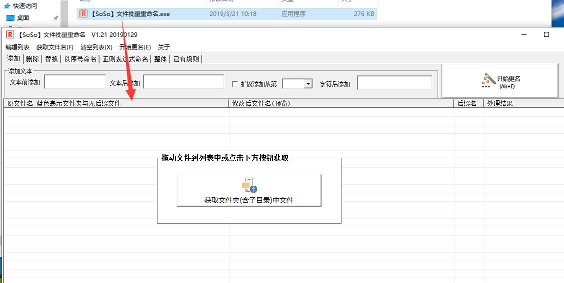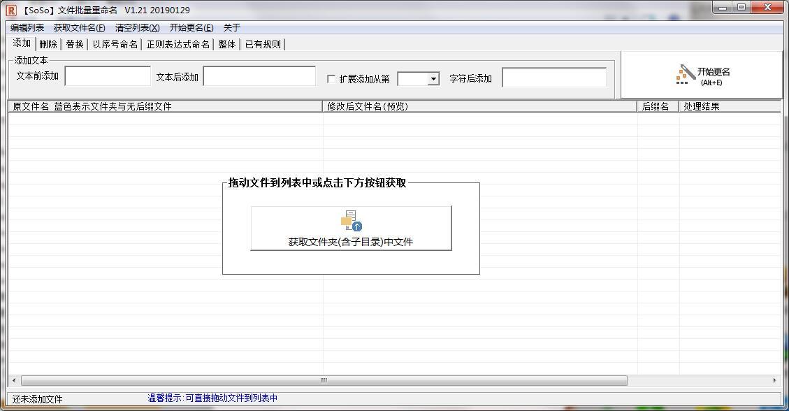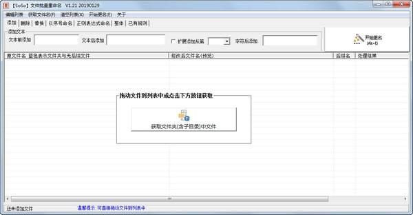 SoSo文件批量重命名是一个非常好用的批量重命名文件的工具。支持直接拖动文件到列表中进行重命名,获取文件夹中指定类型的文件进行重命名,点击列表标题按列排序等功能!
