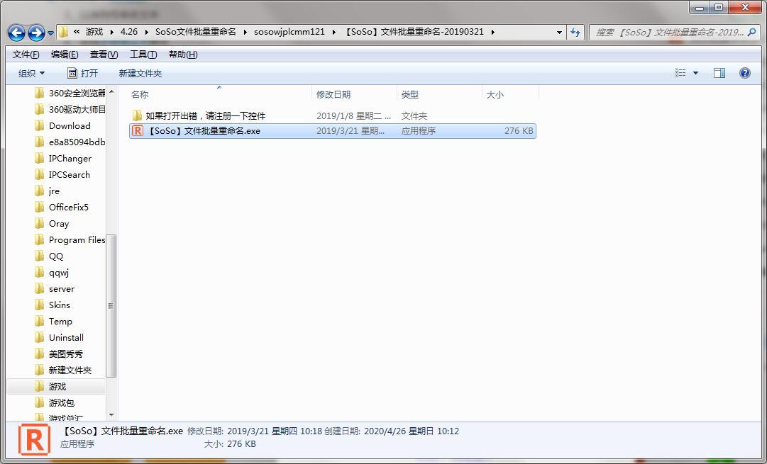 2.解压SoSo文件批量重命名软件包,选择exe程序。