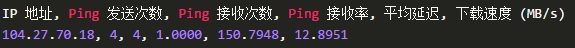 测速完成后,结果会保存在当前目录下的result.csv文件中,用记事本打开,延时顺序从低到高,每列用逗号分隔,即: