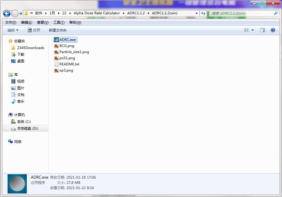 2.解压缩Alpha Dose Rate Calculator软件并运行该文件。