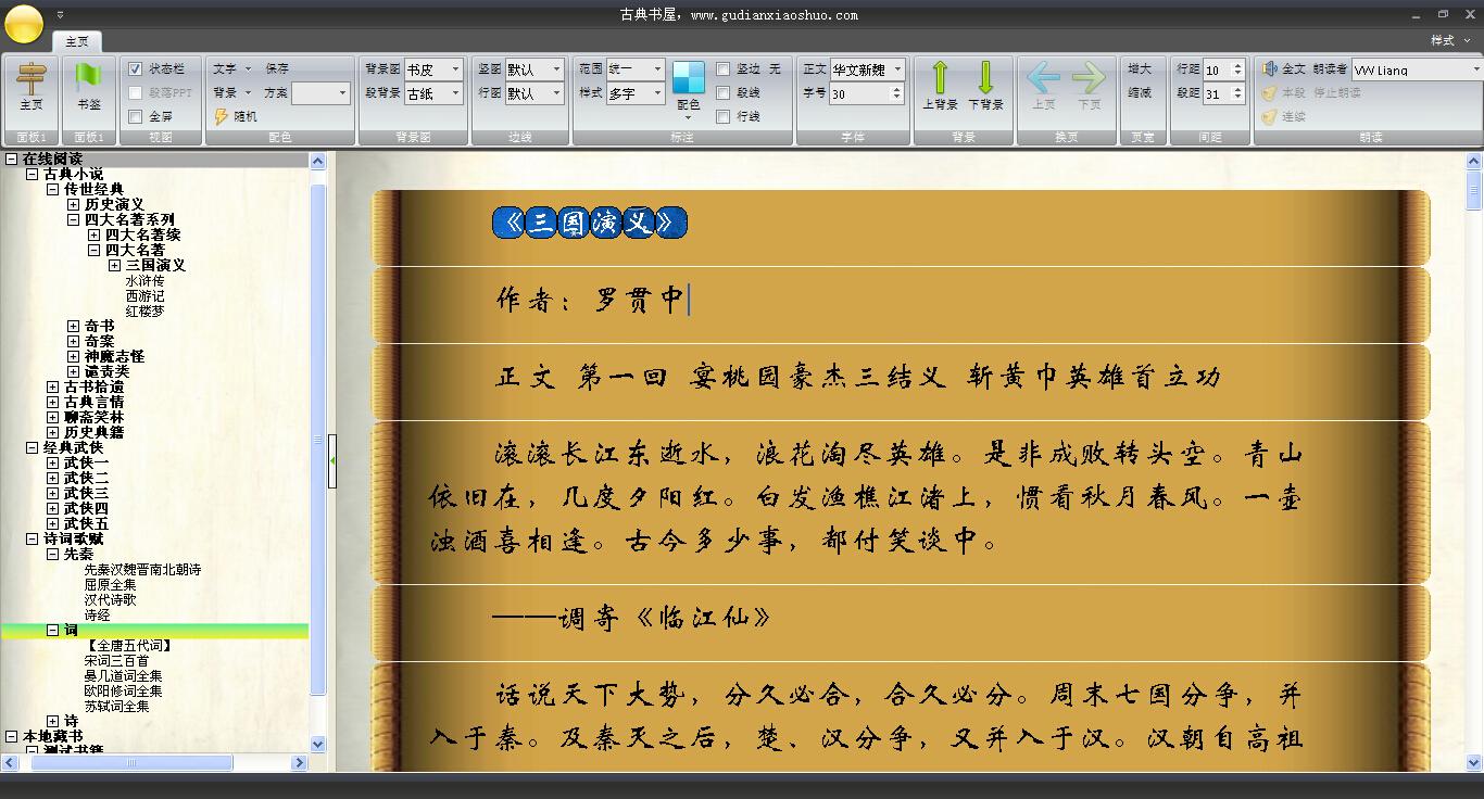 古典书屋是一款电脑阅读软件,页面简单直观,操作简便。古典书屋软件包含各种书籍:古典文学、武侠、诗词等。支持发音朗读,边听边读。受到很多喜欢阅读的用户的喜爱。古典书屋官方版带有精美书签,方便文章管理。