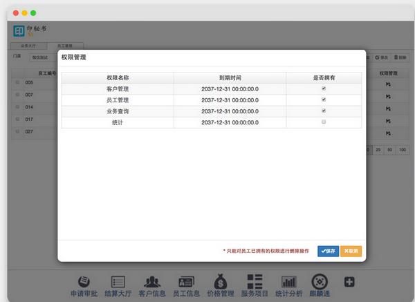 员工的权限可以随时掌握,可以设置权限限制,可以主动收回权限。