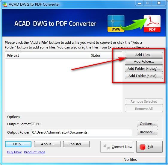 AutoCAD DWG to PDF Converter使用电脑版本,步骤1:添加文件: